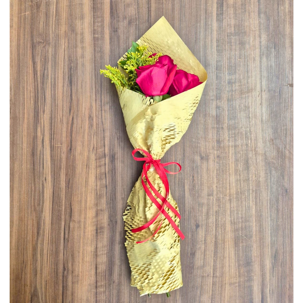 Buquê Clássico com 3 Rosas Vermelhas