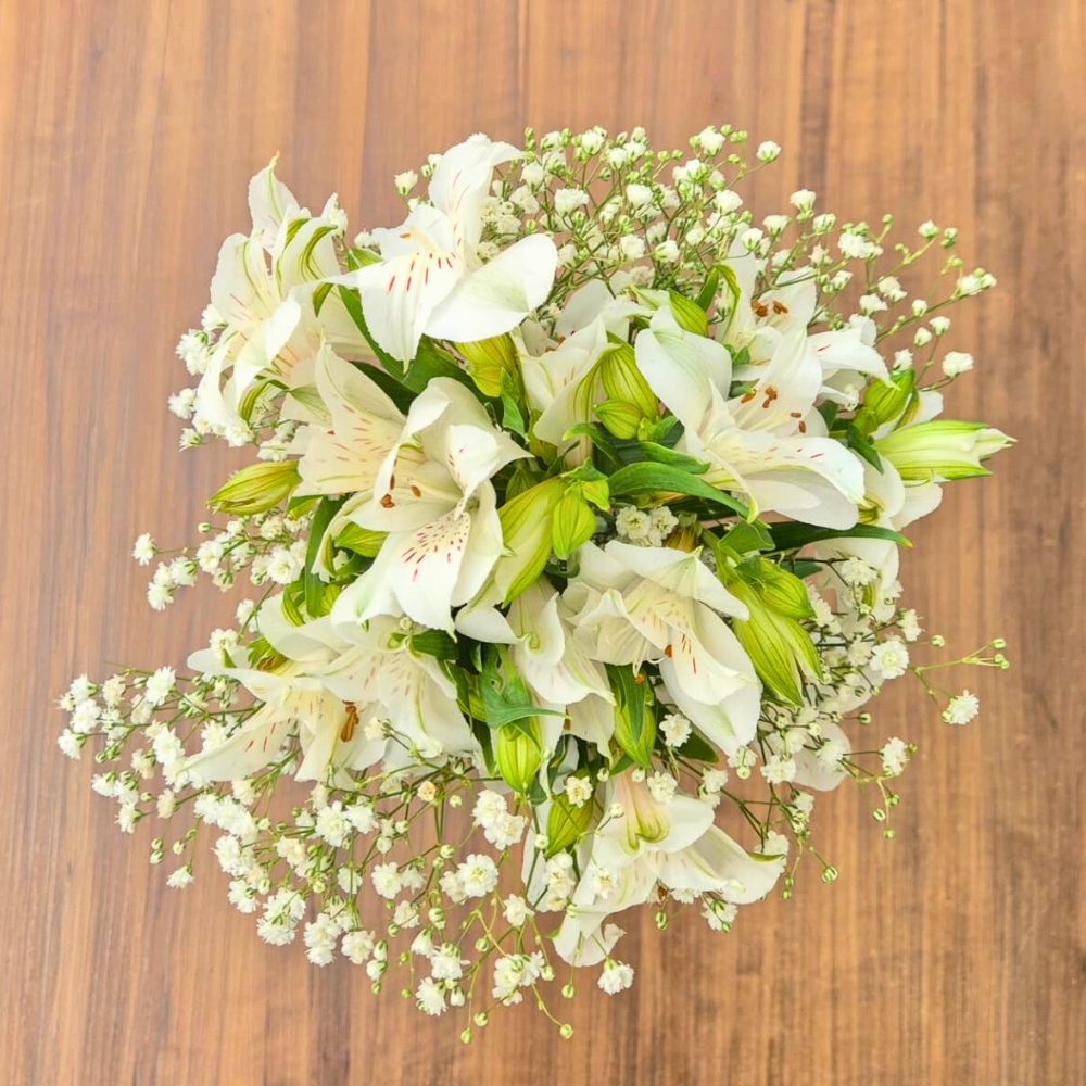 O Buquê Delicado de Alstroemérias com Gypsophila é uma escolha charmosa para transmitir carinho em diferentes momentos, seja como gesto de amizade, agradecimento ou surpresa romântica.